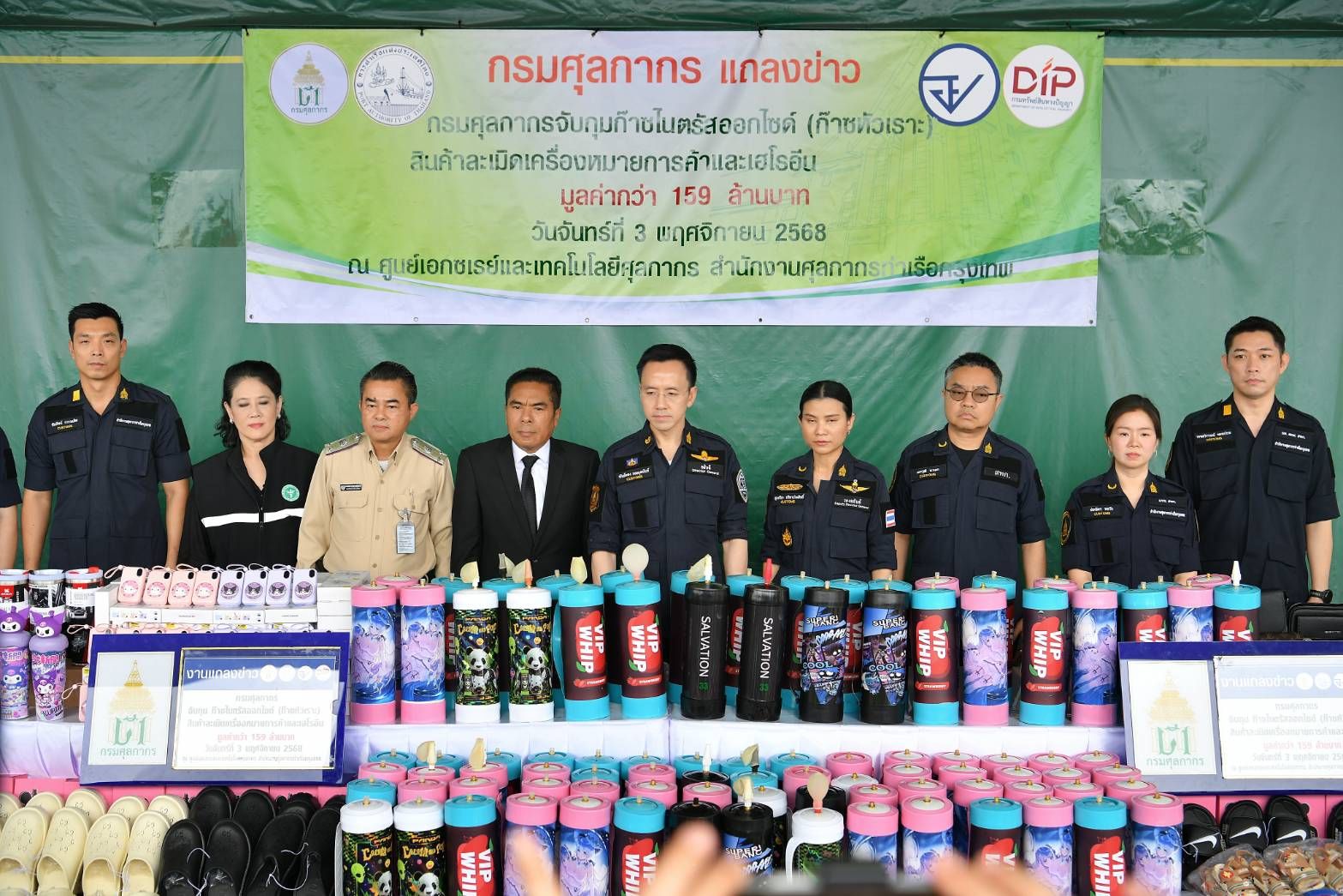 กรมทรัพย์สินทางปัญญา ร่วมผนึกกำลัง กรมศุลกากร และหน่วยงานพันธมิตร ปราบ “ของเถื่อน” สินค้าแบรนด์ปลอมและของผิดกฎหมาย ตั้งแต่ต้นน้ำ มูลค่าความเสียหายกว่า 55 ล้านบาท