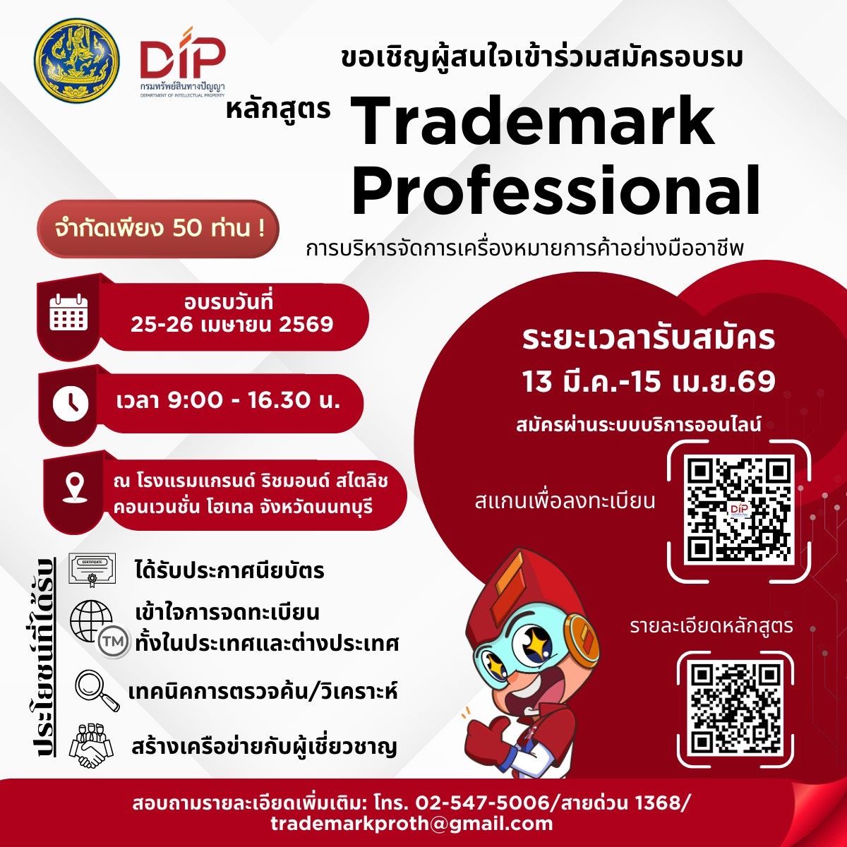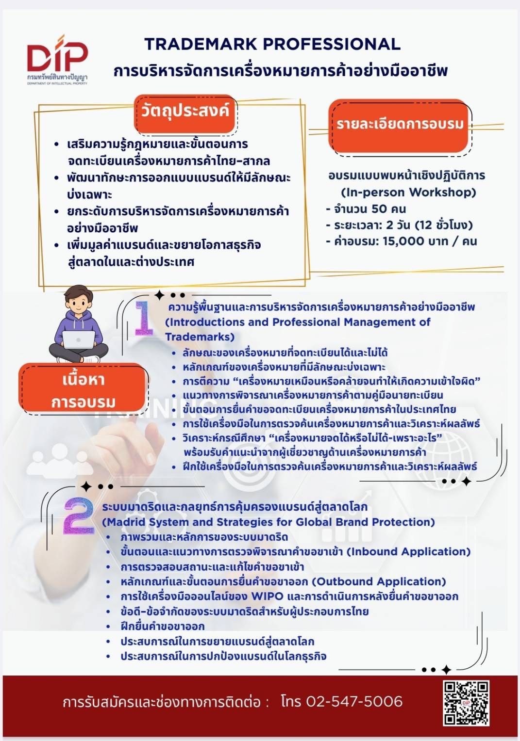 กรมทรัพย์สินทางปัญญา เปิดคอร์สใหม่ “บริหารจัดการเครื่องหมายการค้าอย่างมืออาชีพ” แนะกลยุทธ์ปั้นแบรนด์ปัง! พร้อมติดปีกธุรกิจไทยลุยตลาดโลก ด่วน!! จำกัดเพียง 50 ท่าน รับสมัครถึงวันที่ 15 เม.ย. นี้เท่านั้น