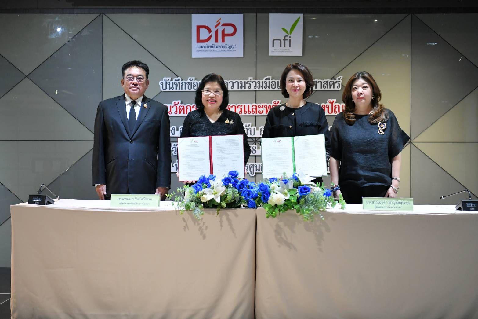 เมื่อวันที่ 24 ธันวาคม 2568 นางอรมน ทรัพย์ทวีธรรม อธิบดีกรมทรัพย์สินทางปัญญา และนางสาวไปยดา หาญชัยสุขสกุล ผู้อำนวยการสถาบันอาหาร ร่วมลงนามบันทึกข้อตกลงความร่วมมือ (MOU) เพื่อบูรณาการความร่วมมือเชิงยุทธศาสตร์ด้านนวัตกรรมอาหารและทรัพย์สินทางปัญญา มุ่งสร้างมูลค่าเพิ่มและยกระดับอุตสาหกรรมอาหารไทยให้สามารถแข่งขันในตลาดสากลได้อย่างยั่งยืน พร้อมสนับสนุนให้คนไทยเป็นเจ้าของนวัตกรรมอาหารที่ตลาดโลกต้องการ