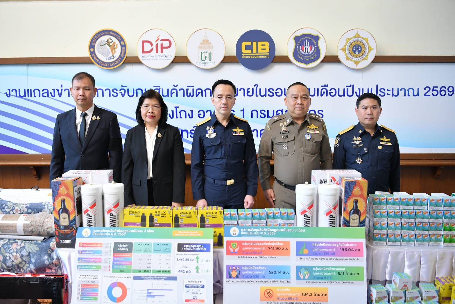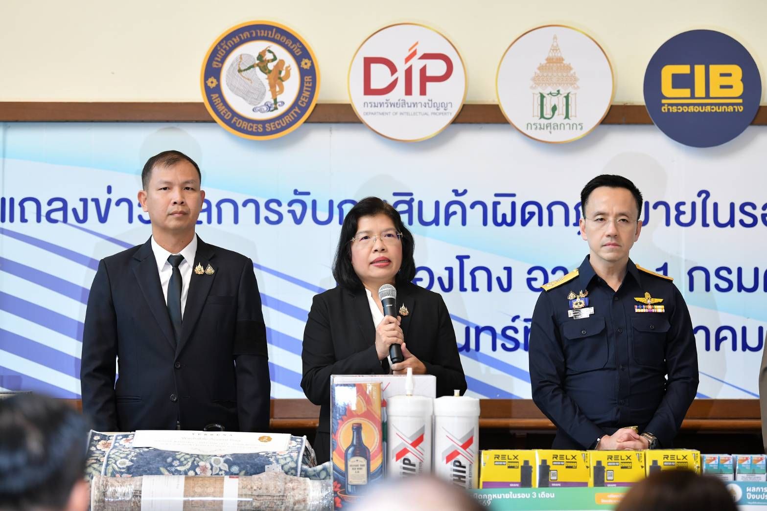 เมื่อวันที่ 29 ธันวาคม 2568 นางอรมน ทรัพย์ทวีธรรม อธิบดีกรมทรัพย์สินทางปัญญา ร่วมแถลงผลสำเร็จในความร่วมมือปราบปรามสินค้าละเมิดทรัพย์สินทางปัญญาและสินค้าผิดกฎหมาย ร่วมกับ นายพันธ์ทอง ลอยกุลนันท์ อธิบดีกรมศุลกากร พล.ต.ท.ณัฐศักดิ์ เชาวนาศัย ผู้บัญชาการตำรวจสอบสวนกลาง (CIB) และหน่วยงานที่เกี่ยวข้อง ณ ห้องโถง อาคาร 1 กรมศุลกากร เผยผลจับกุมในรอบ 3 เดือน (ตุลาคม - ธันวาคม 2568) สามารถปราบสินค้าละเมิดทรัพย์สินทางปัญญา ได้กว่า 80,000 ชิ้น มูลค่ารวมกว่า 708 ล้านบาท