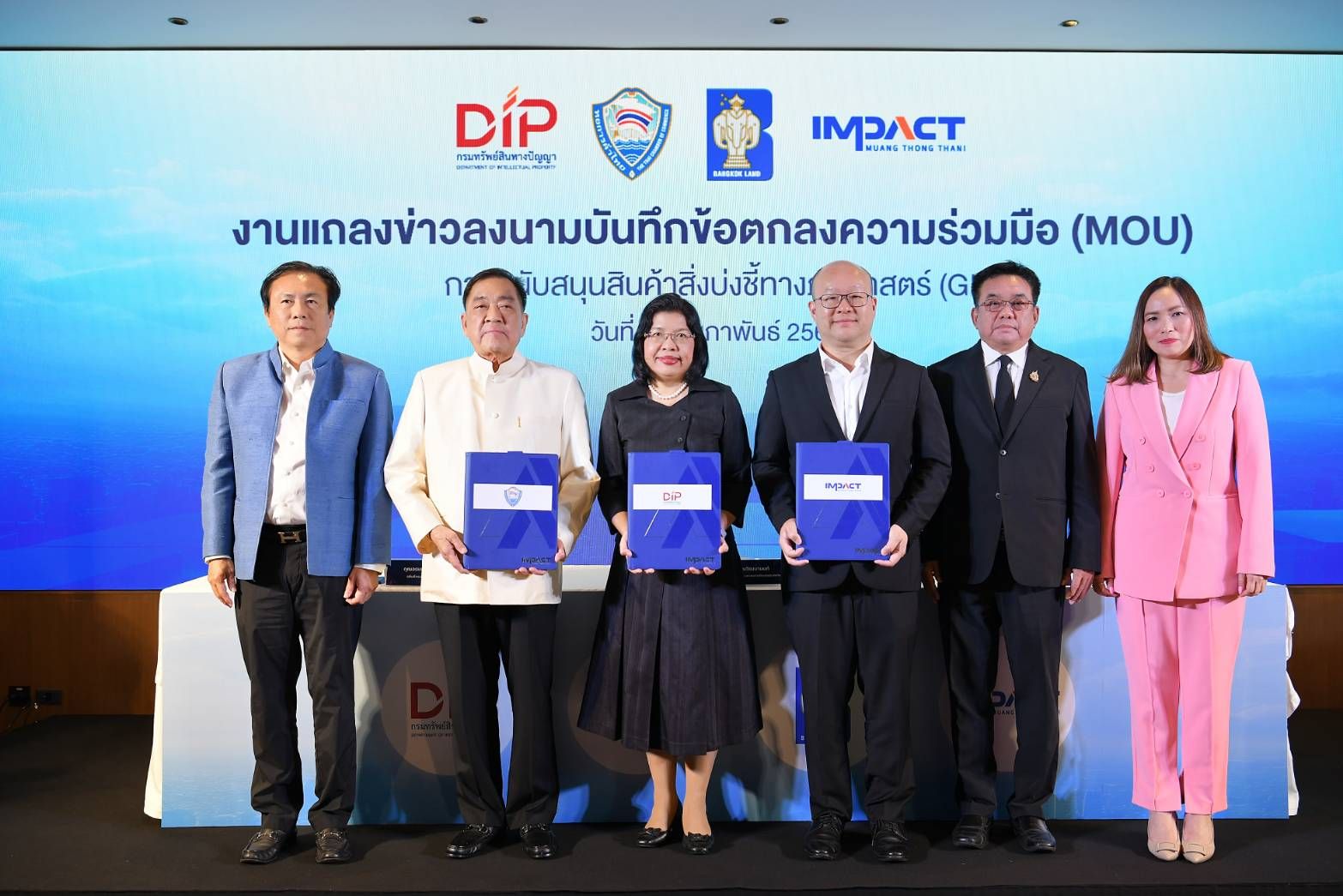 กรมทรัพย์สินทางปัญญา จับมือ หอการค้าไทย และบริษัท อิมแพ็ค เอ็กซิบิชั่น แมเนจเม้นท์ จำกัด ลงนาม MOU ครั้งสำคัญ ประกาศเจตนารมณ์ร่วมส่งเสริมสินค้าสิ่งบ่งชี้ทางภูมิศาสตร์ (GI) ของไทย