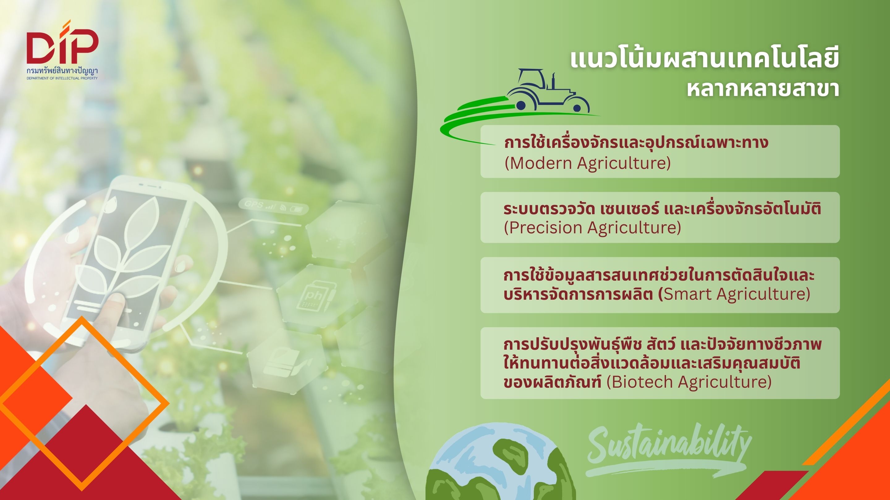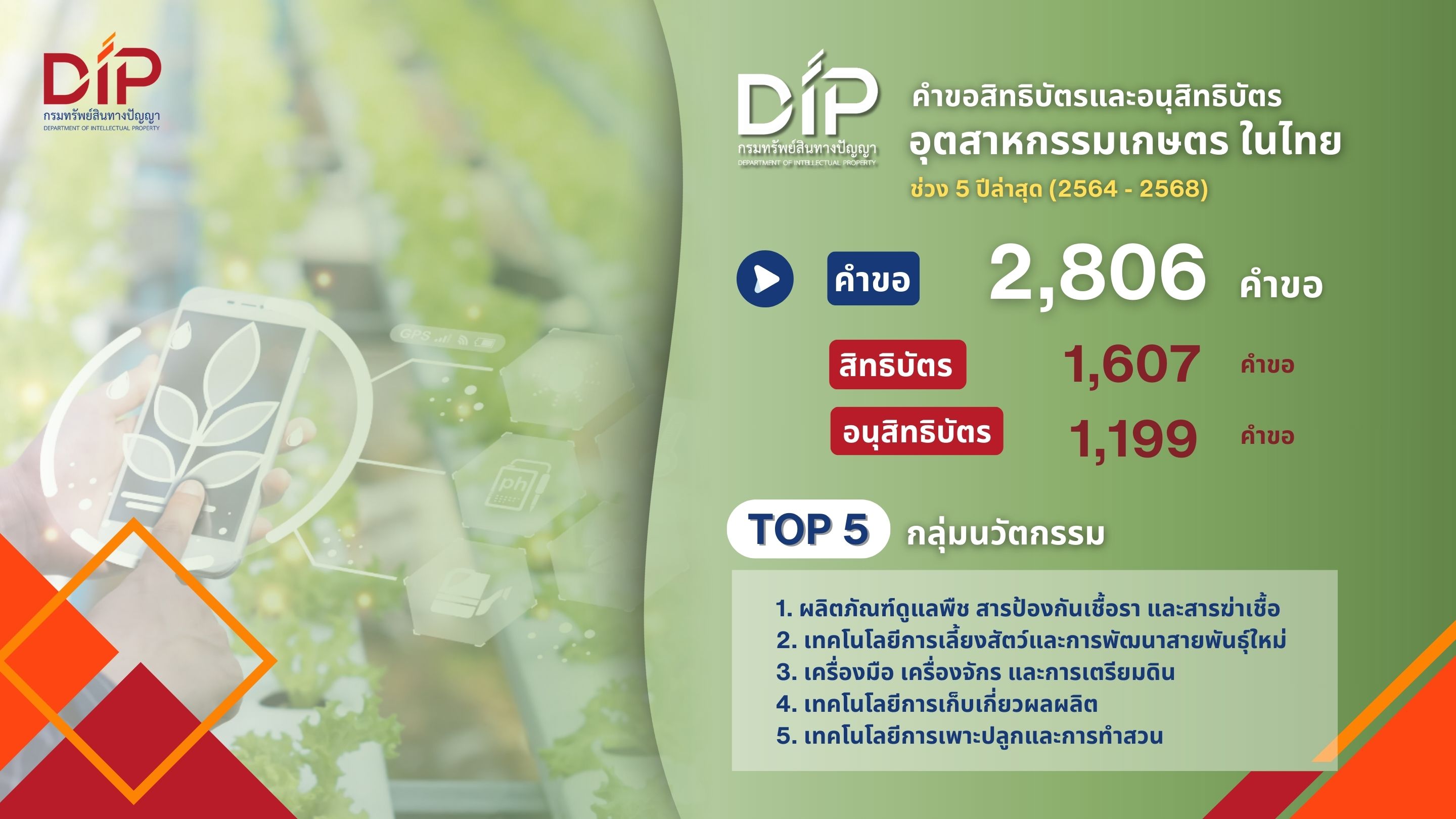 กรมทรัพย์สินทางปัญญา เปิดเทรนด์สิทธิบัตร “เกษตรกรรม” เมื่อโลกปั่นป่วน พลิกเกมภาคเกษตรไทย–โลก ชูทิศทางเกษตรนวัตกรรม เพิ่มมูลค่า สอดรับกติกาความยั่งยืน