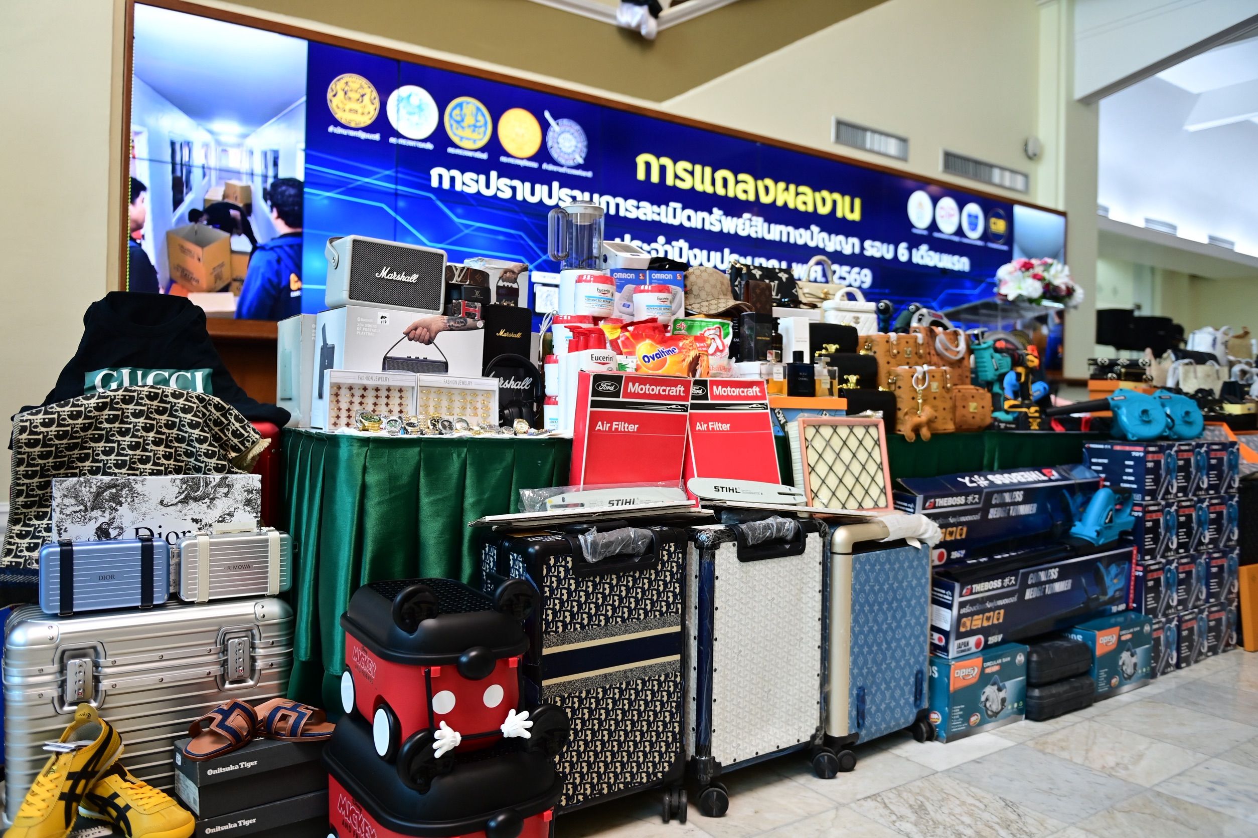 รัฐบาลผนึก “เศรษฐกิจ-ความมั่นคง-ยุติธรรม” ปราบสินค้าละเมิดฯ 6 เดือน จับ 332 คดี ยึดกว่า 1.3 ล้านชิ้น มูลค่าเสียหายทะลุ 2,300 ล้าน ยกระดับความเชื่อมั่นการค้า-การลงทุนไทย เสริมภาพลักษณ์ในเวทีโลก
