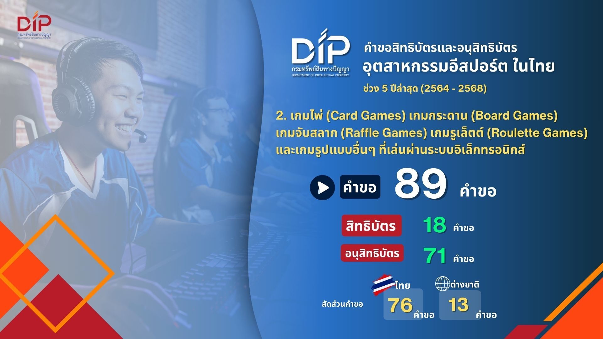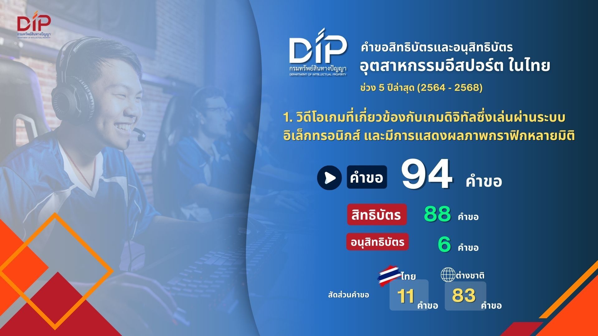 เปิดเทรนด์สิทธิบัตร “อีสปอร์ต” โลกการแข่งขันที่ขับเคลื่อนด้วยนวัตกรรม ยกระดับเกมบนจอ สู่เศรษฐกิจดิจิทัลเต็มรูปแบบ