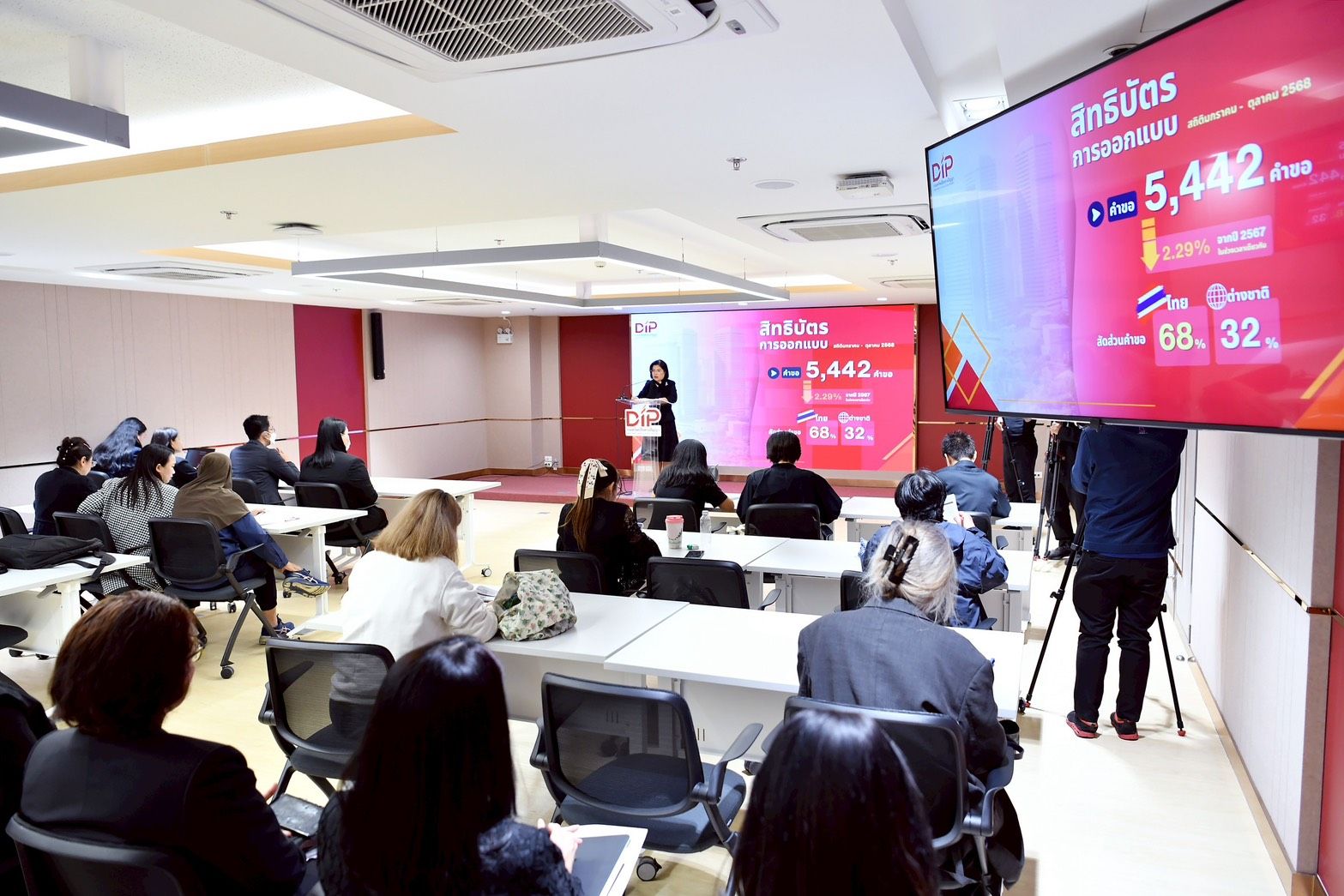 นางอรมน ทรัพย์ทวีธรรม อธิบดีกรมทรัพย์สินทางปัญญา เผยสถิติการยื่นคำขอจดทะเบียนทรัพย์สินทางปัญญาในประเทศไทย ในช่วง 10 เดือนแรกของปี 2568 (มกราคม - ตุลาคม 2568) มีการยื่นคำขอจดทะเบียนสูงถึง 62,961 คำขอ เพิ่มขึ้น 7.80% เมื่อเทียบกับช่วงเวลาเดียวกันในปี 2567 (58,403 คำขอ) และมีการแจ้งข้อมูลลิขสิทธิ์ 11,531 รายการ ลดลง 11.81% จากปี 2567 (13,075 รายการ)