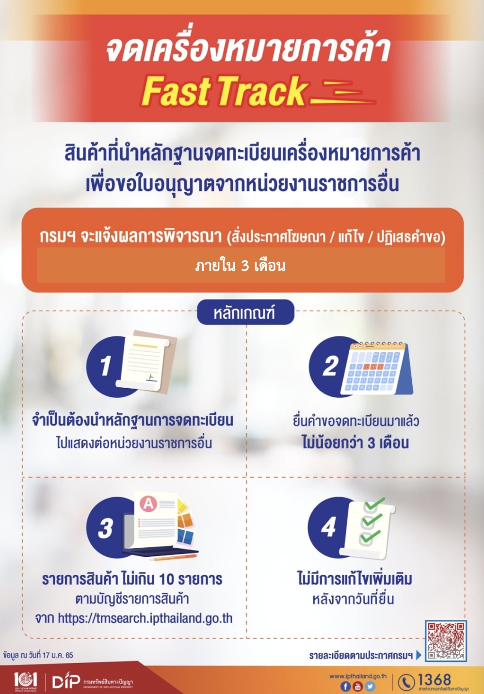 4ประกาศกรมทรัพย์สินทางปัญญา เรื่อง การพิจารณาคำขอต่ออายุการจดทะเบียนเครื่องหมายการค้าแบบเร่งด่วน (Renewal Fast Track)